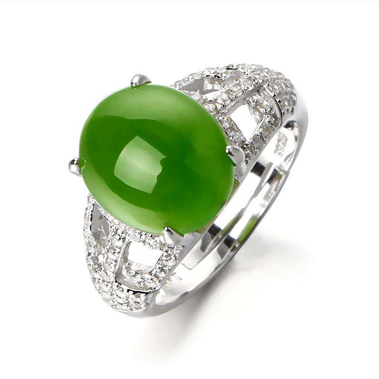 s925纯银绿宝石戒指女款水晶时尚玉石戒指