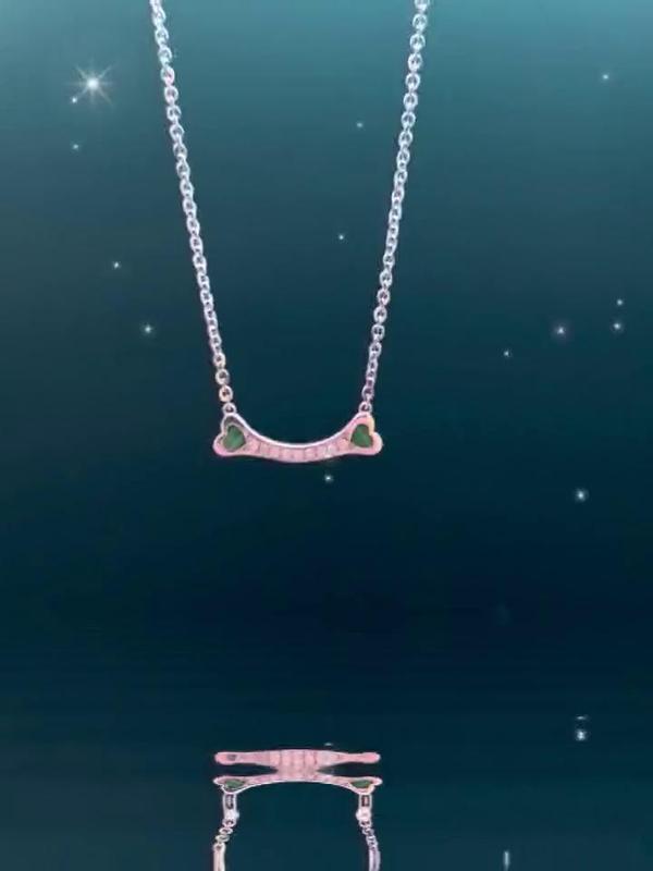 B&H Xin•Yue 系列项链,18K白金材质,镶嵌孔雀石,钻石。