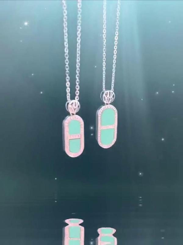 Time Capsule 系列吊坠项链,18K白金材质,镶嵌绿松石,钻石。