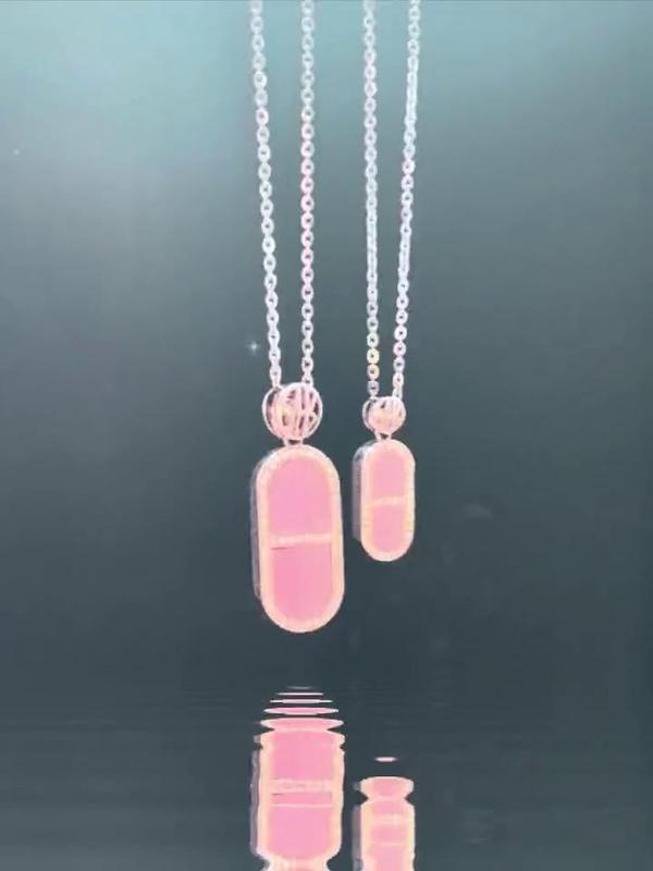 Time Capsule 系列吊坠项链,18K白金材质,镶嵌粉色贝母宝石。